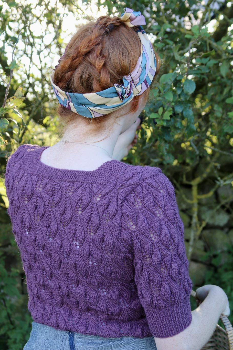 It Cannot Fail To Please is knitted using [link: Susan Crawford Excelana North, fingering weight = /collections/excelana-4-ply :link], which is the perfect yarn both for lace knitting and a garment requiring stretch and the ability to retain its shape. The sample shown is knitted in the stunning autumnal shade of [productlink: Damson Wine = damson-wine :productlink].
