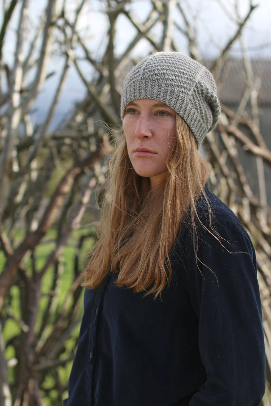 For country walks or wrapping up warm on urban streets - Grange is a gender-neutral, casual, every day hat; which can be knitted either as a slouchy version or a shorter beanie style. Its textured design evokes an old barn's wooden boards, rustic and raw, straight or askew.Granget is warm and soft, with just the right amount of drape for a slouchy style hat, but with enough character to emphasise the beautiful textured pattern on its surface.About Grange: