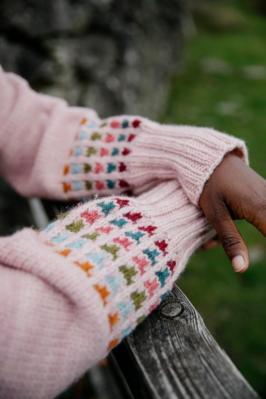 Kit Size Two: To fit sizes 92 to 117cm (36-46in) includes 6 X 100g skeins of Wold Worsted in colour of your choice plus 6 x 25g skeins one in each of 6 shades for the slip-stitch yoke and sleeves.